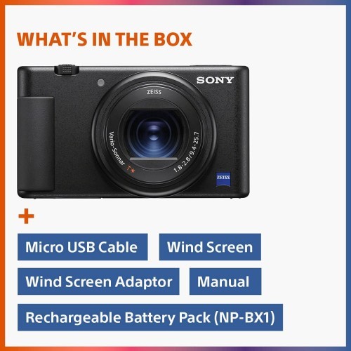 Sony索尼 ZV-1 数码相机 内容创作者,Vlogging和YouTube,带翻转屏幕 内置麦克风,4K HDR 视频,触摸屏显示,实时视频流,网络摄像头